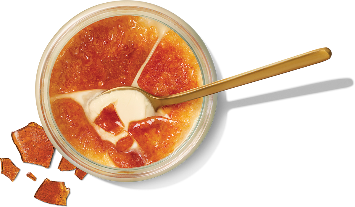 TORCH: Follow step 1 and 2. 3. Move the flame of the torch 2 to 3 cm over the sugar to caramelize until dark golden-brown. 4. Let cool for 2 minutes before serving.