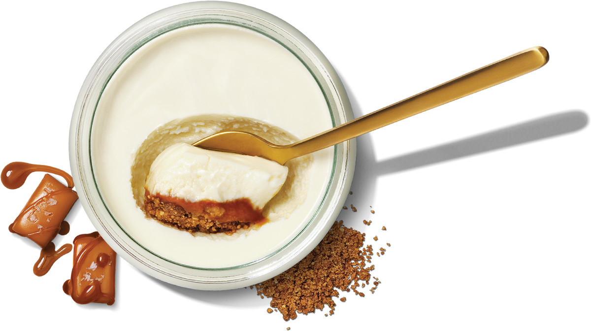 Cream cheese product (milk, cream, salt, bacterial culture, microbial enzyme), Salted caramel (sugar, cream, water, butter, salt), Graham crumbs (enriched flour, sugars [sugar, brown sugar, fancy molasses], graham wheat flour, baking powder, salt, sunflower oil, ammonium bicarbonate), Sugar, Liquid whole eggs, Natural flavour.